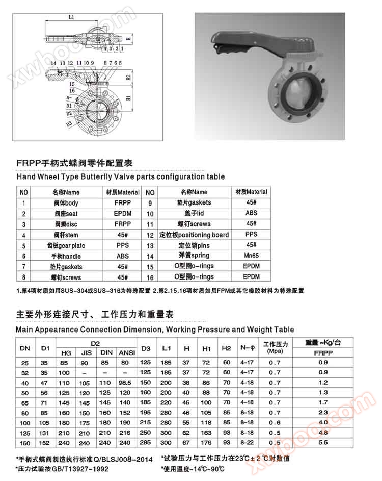 Especificações da válvula de borboleta: DN25-150